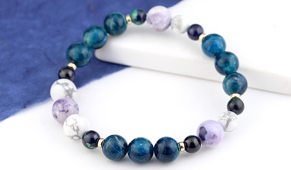 購入商品:[★]完全限定品ブレス【蒼天の灯(そうてんのあかり)】(ブルー翡翠・タイチンルチルクォーツAAAA・サファイアAA・ラブラドライトSA・ブルーアンフィボールインクォーツ)