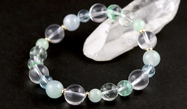 購入商品:[★]完全限定品ブレス【そよか】(マダガスカル産スタークォーツ・ラベンダー翡翠・ブルートパーズAAA・マダガスカル産グリーンファントムクォーツ・プラジオライト[グリーンアメジスト]・翡翠AAA)
