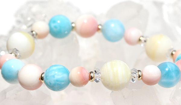 購入商品:[★]完全限定品ブレス【人魚の宝石】(クイーンコンクシェル・ゴールデンレースマザーオブパール[沖縄産]・ラリマー[エンジェルタイプ])SA)